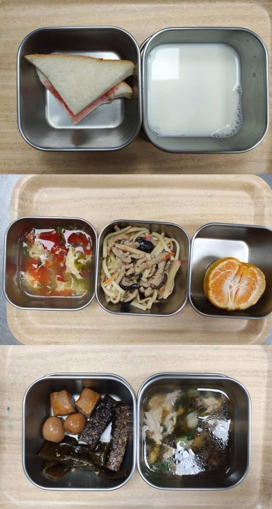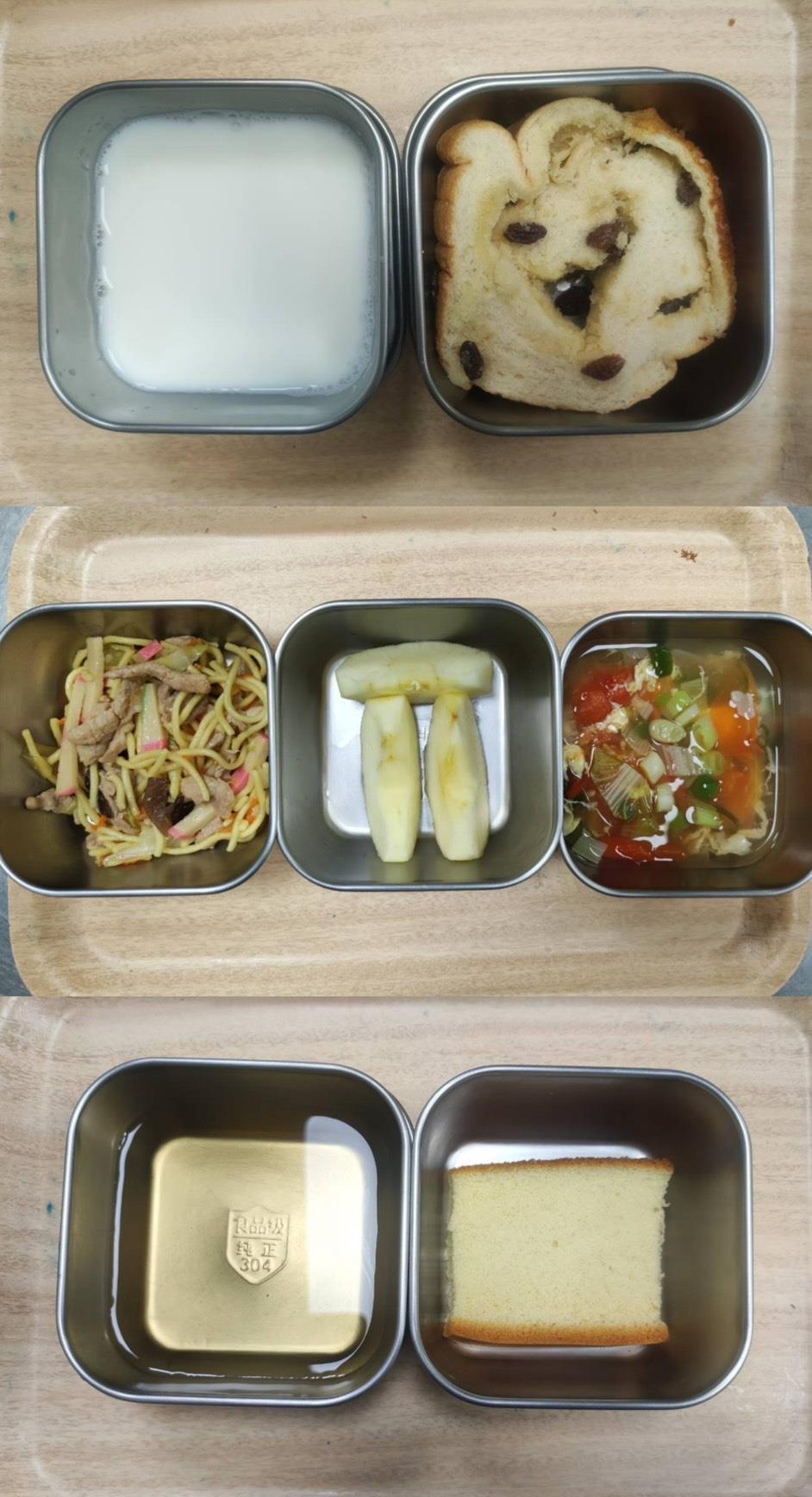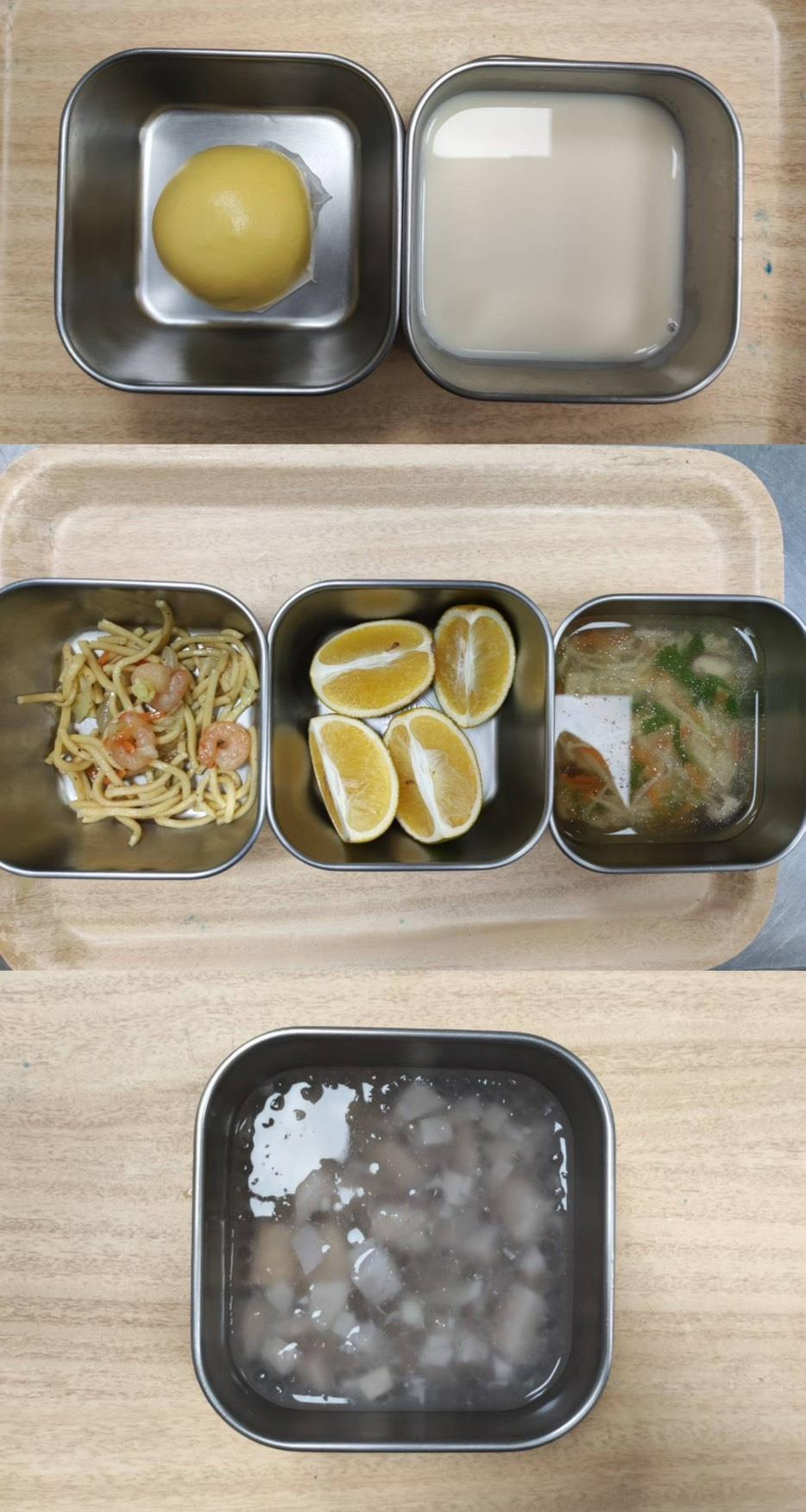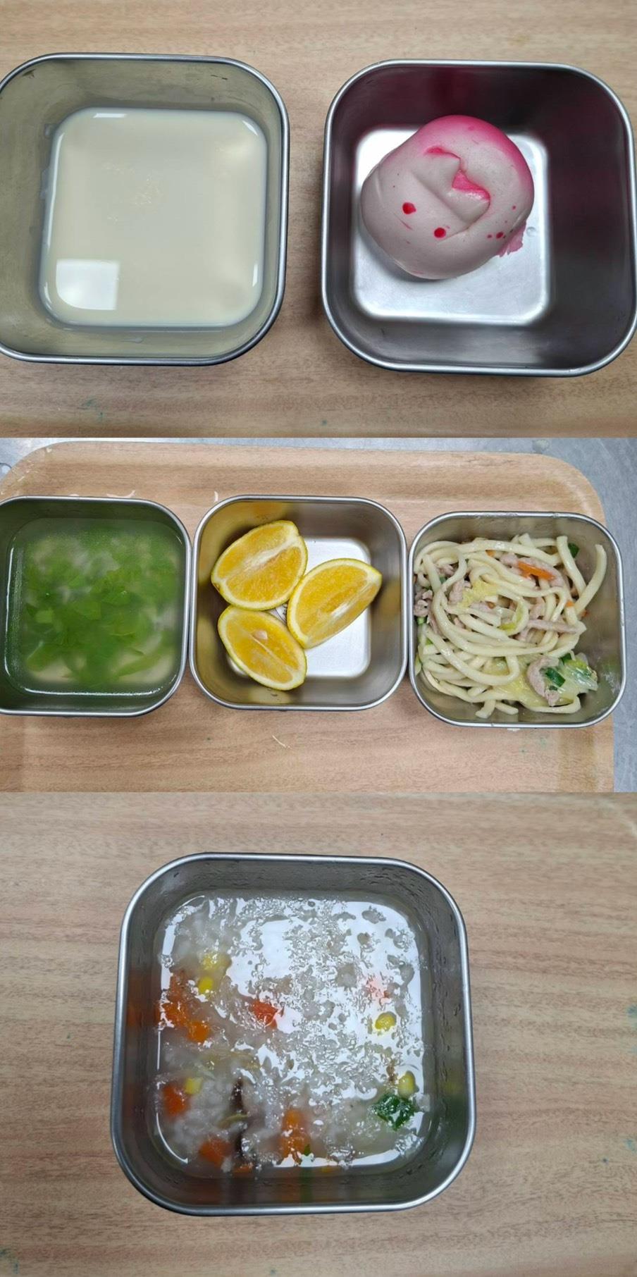 早餐-煎蛋吐司/牛奶 午餐-日式燒肉飯/義式蔬菜湯/水果 *蔬菜湯更改為排骨蘿蔔湯 點心-肉燥粿仔條