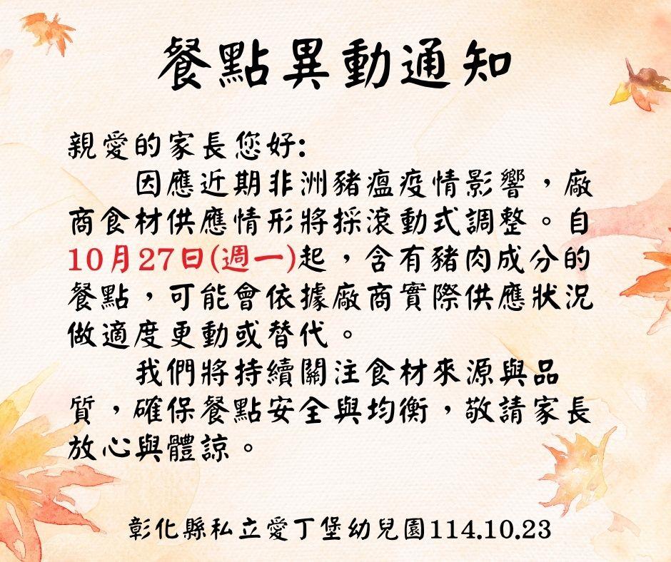 餐點異動通知
