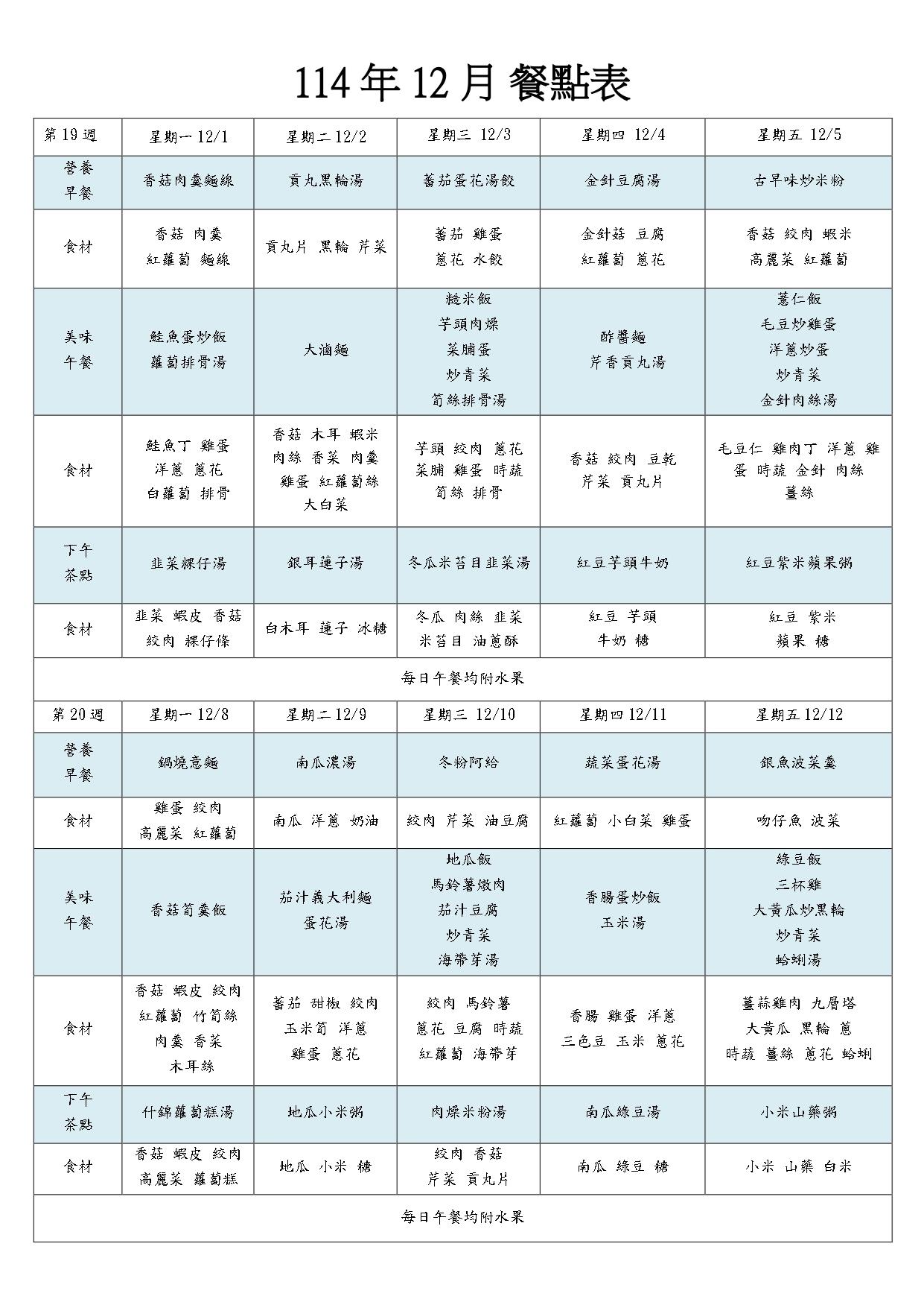 114年12月餐點表