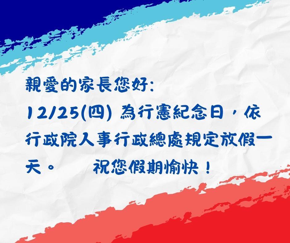 行憲紀念日放假一天