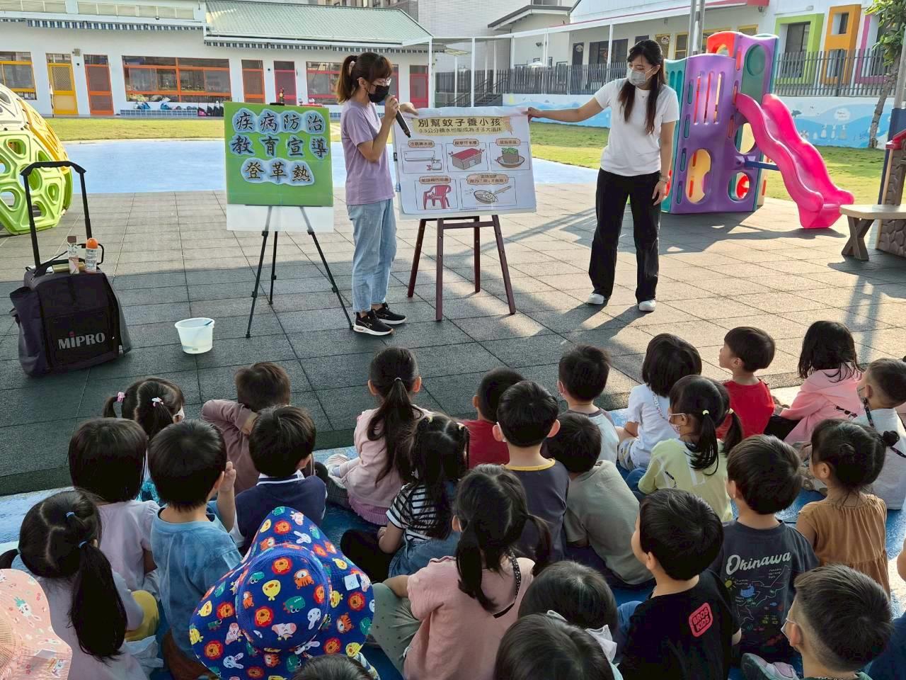 登革熱是由病媒蚊叮咬傳染的疾病。小朋友要注意防蚊,穿薄長袖、使用防蚊液,不在積水的地方玩耍。看到積水要請大人幫忙清理,避免蚊子孳生。若出現發燒、頭痛等不舒服,要告訴老師或家人,保護自己也保護大家。