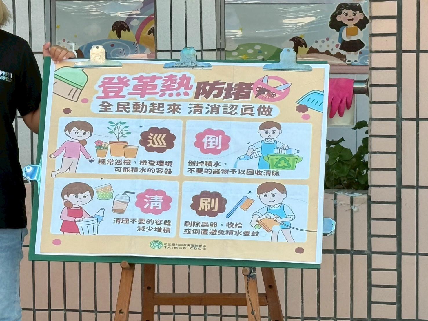 疾病防治宣導-滅絕登革熱 活動消息 介紹登革熱是由蚊子叮咬所傳染的疾病,說明蚊子喜歡在積水處孳生。接著引導幼兒觀察生活中容易積水的地方,討論如何「清除積水、倒掉髒水、蓋好容器」。最後由教師帶領幼兒一起喊出防治口號「巡、倒、清、刷,登革熱不來家」,加深防疫印象。 2025-10-15 顏翊宸 Read more