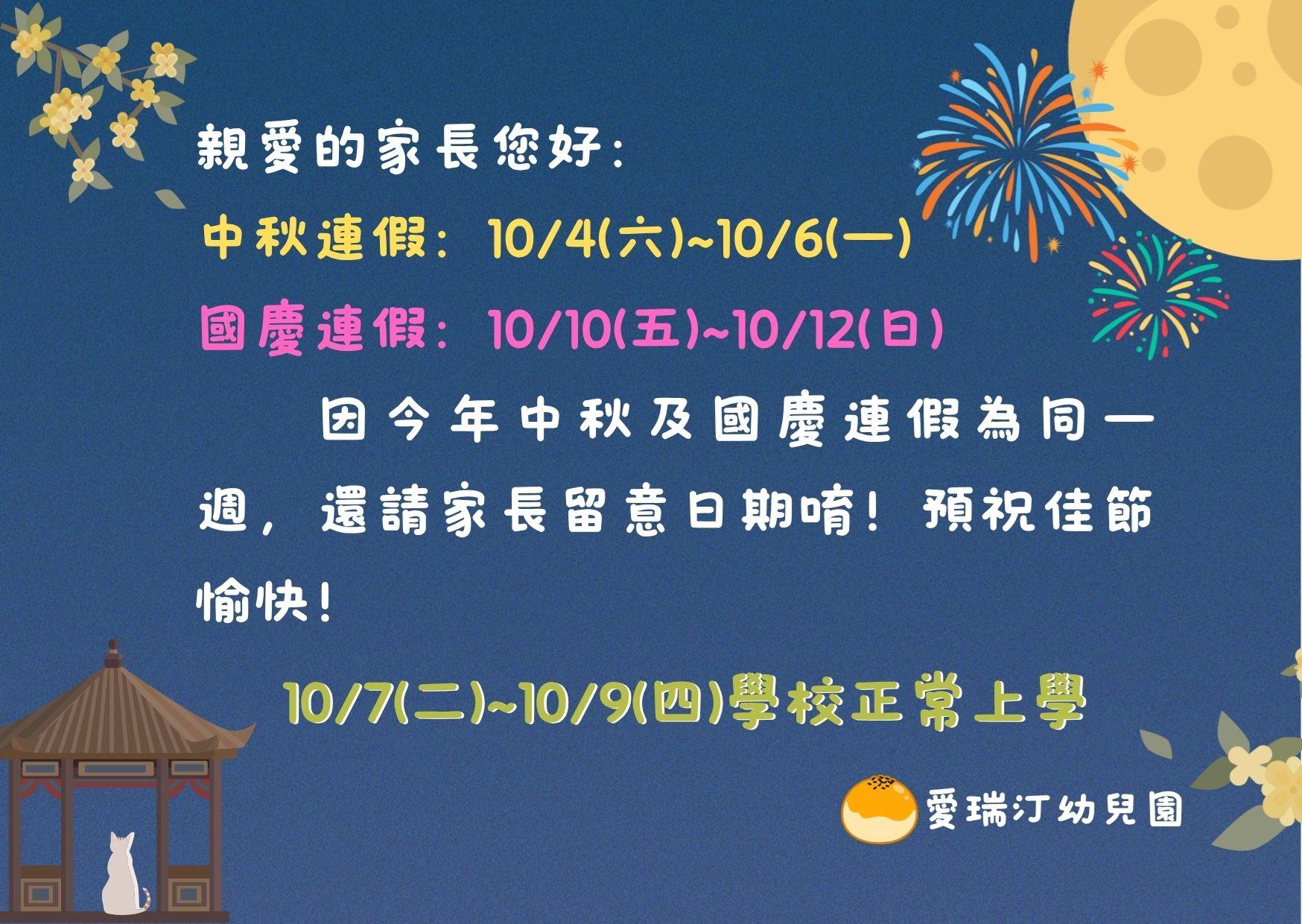 國定假日通知-中秋節 國慶日