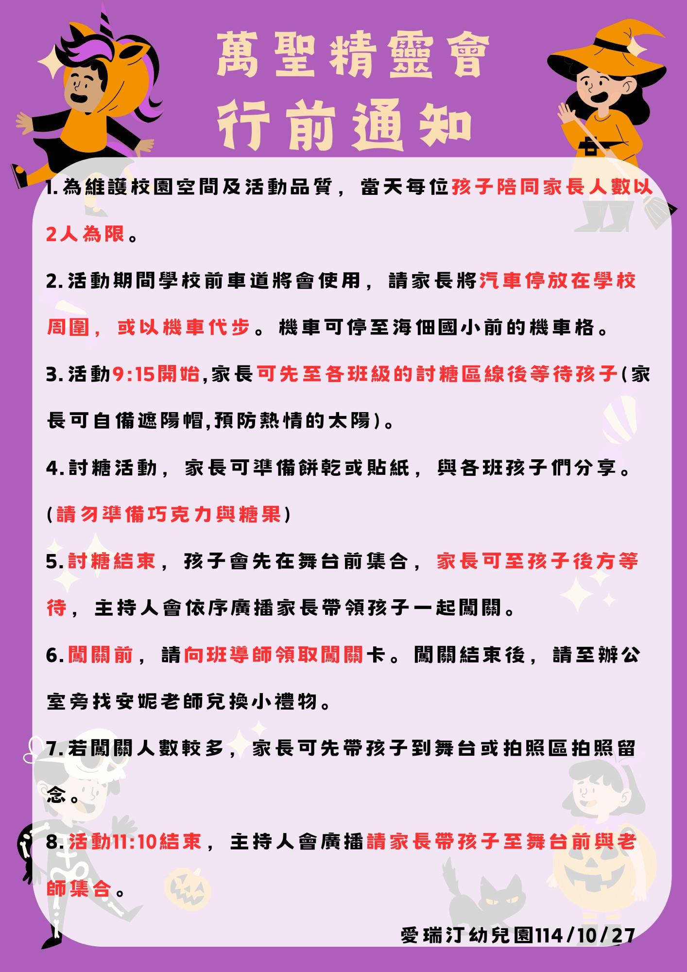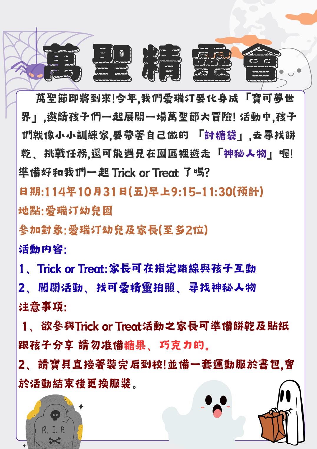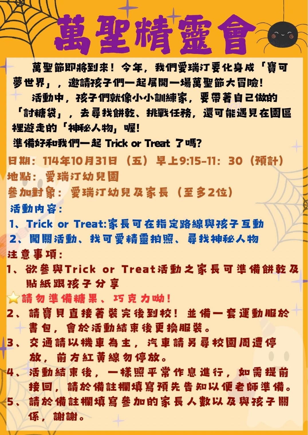 萬聖精靈會活動~行前通知